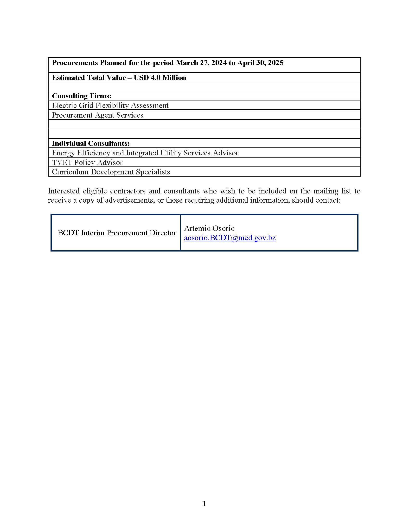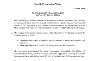 Specific Procurement Notice Specific Procurement Notice m3d@dmin2024-04-17T16:03:28+00:00April 17th, 2024|Belize Compact Development Program, Consultancy Services, Economic Development, Notices, Vacancies/Job Opportunities| Read More