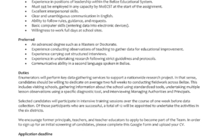 Vacancy Vacancy m3d@dmin2024-06-29T12:16:40+00:00June 29th, 2024|Belize Compact Development Program, Consultancy Services, Vacancies/Job Opportunities| Read More