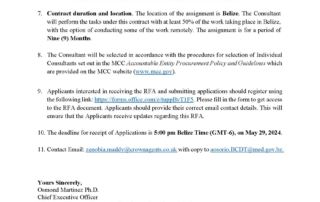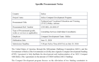 Specific Procurement Notice Specific Procurement Notice m3d@dmin2024-06-13T18:58:59+00:00June 13th, 2024|Belize Compact Development Program, Economic Development, MCC, Notices| Read More