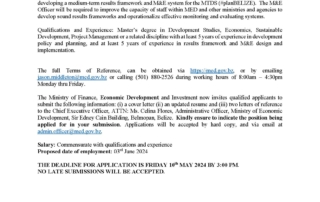 Monitoring and Evaluation (M&E) Officer Duty Station: Belmopan – Ministry