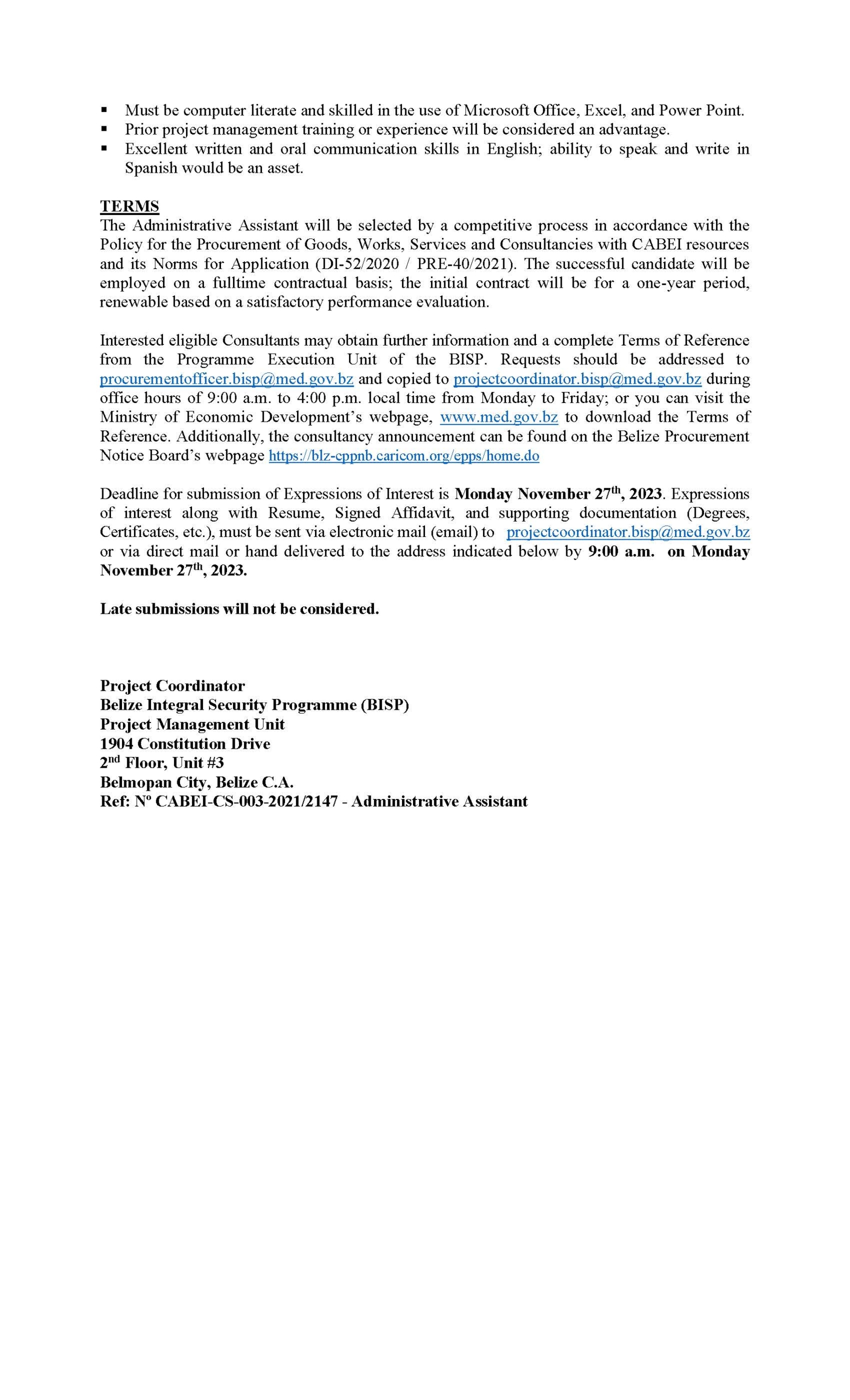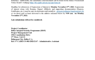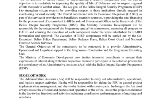 CONSULTANCY FOR ADMINISTRATIVE ASSISTANT (AA) FOR THE BELIZE INTEGRAL SECURITY PROGRAMME (BISP)