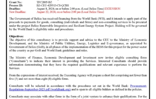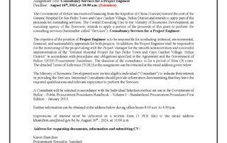 Consultancy Services for a Project Engineer Country: Belize Name of