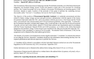 Consultancy Services for the Procurement Specialist Assistant Country: Belize Name