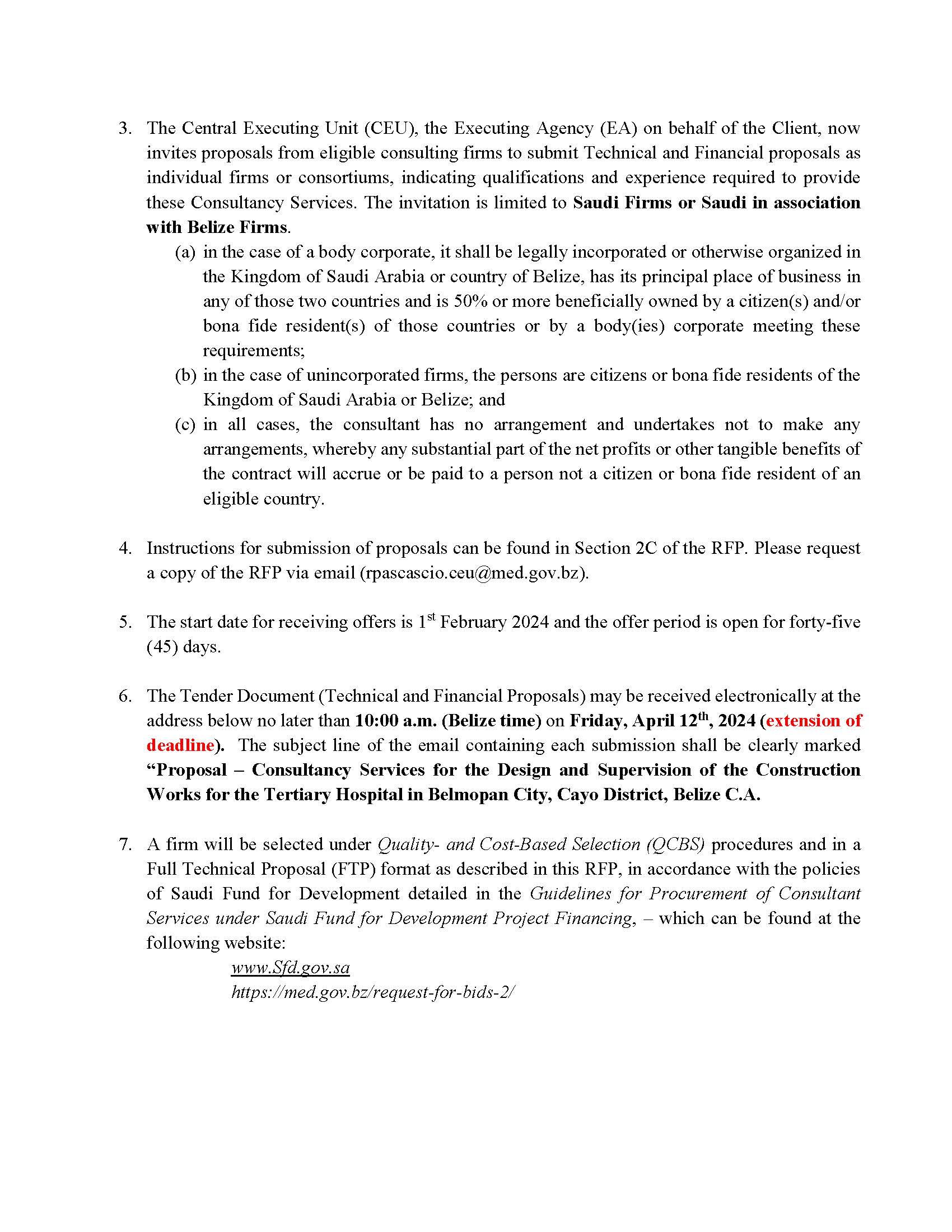 NOTICE FOR REQUEST FOR PROPOSALS (RFP) EXTENSION OF DEADLINE RFP