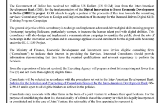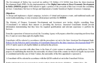 For more information, click the link below: https://met.dotdev.bz/wp/wp-content/uploads/2023/10/Rev-Ext-BL-L1039-REOI-notice-Consultancy-Services-to-Design-a-Digitization-of-Historial-Records-Strategy-for-the-Land-Registry.pdf