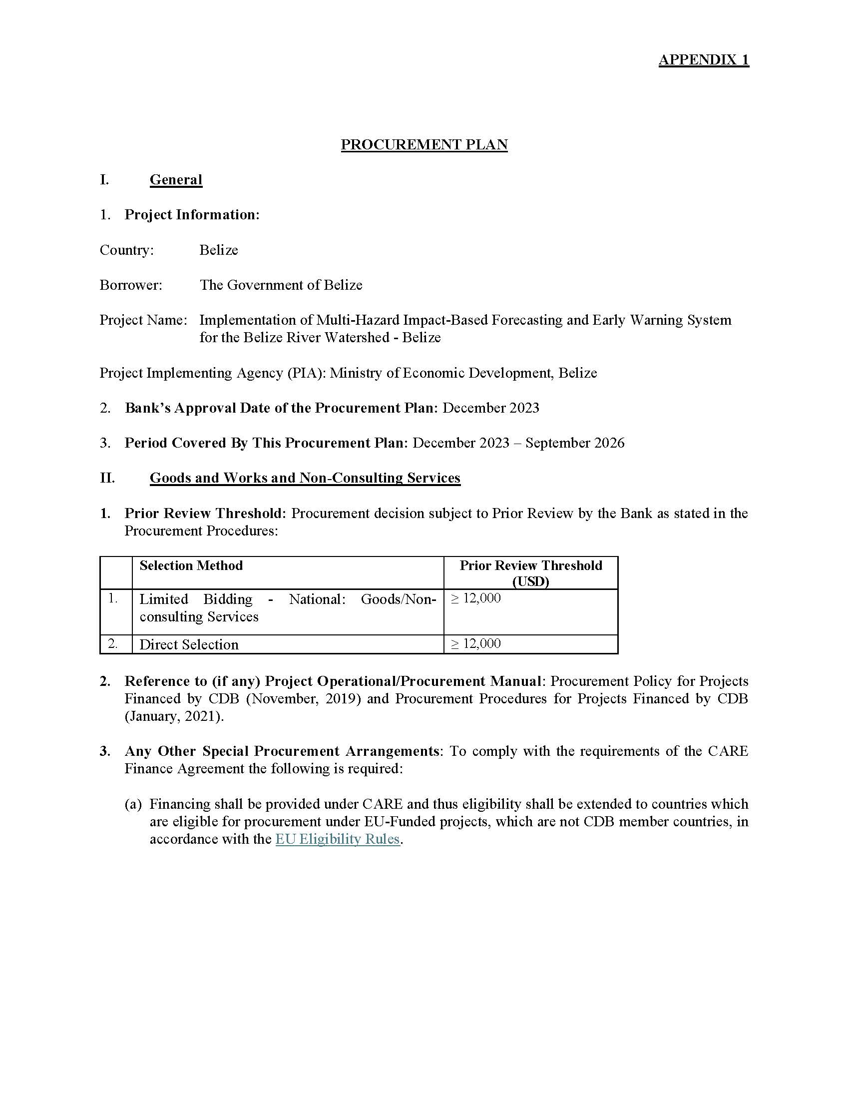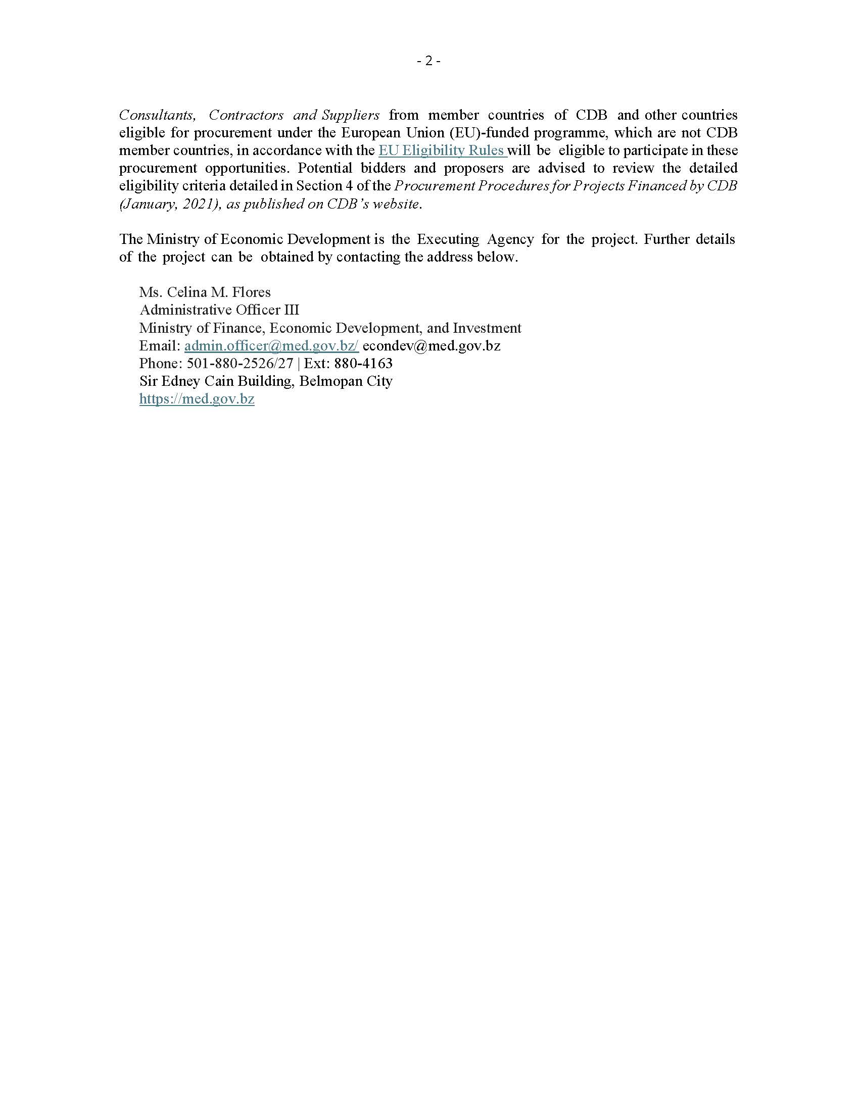 Institution: Ministry of Finance, Economic Development, and Investment Country: Belize