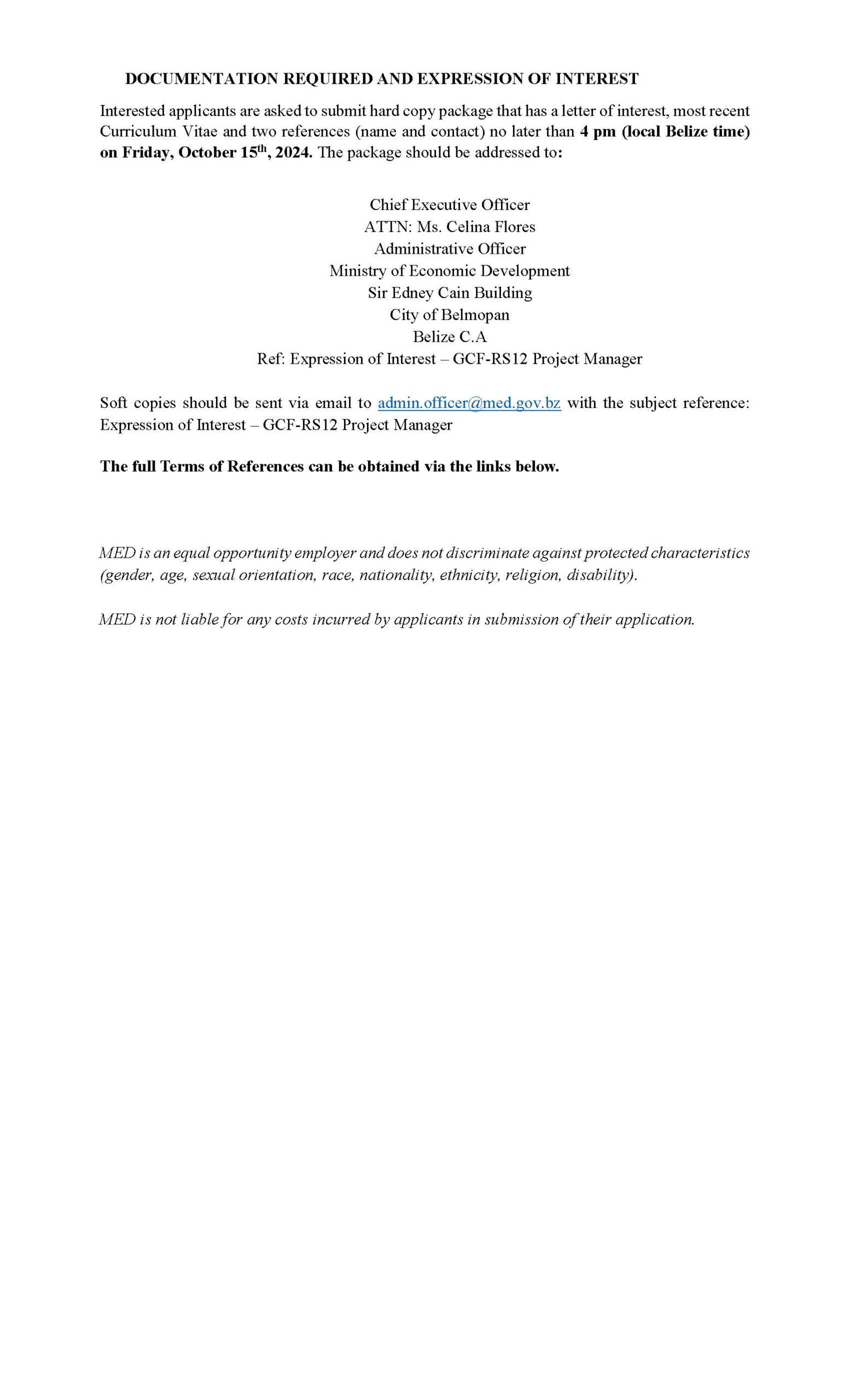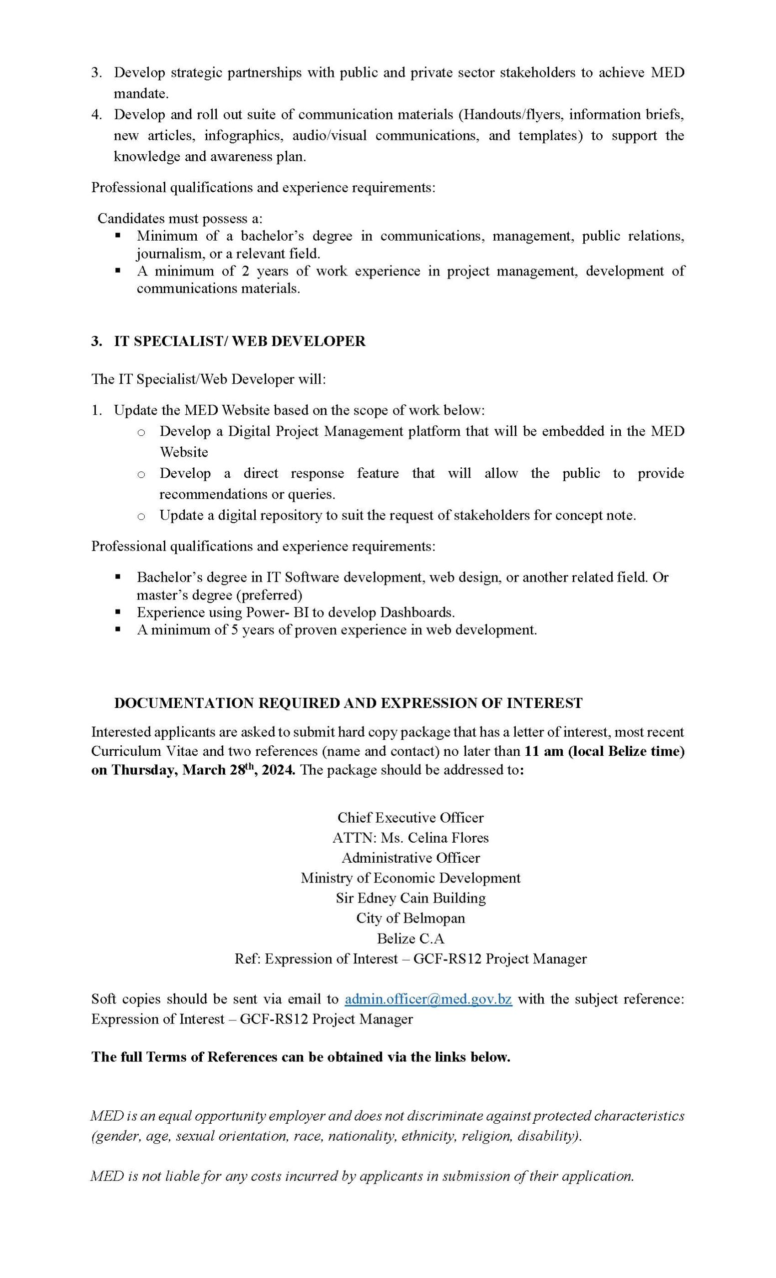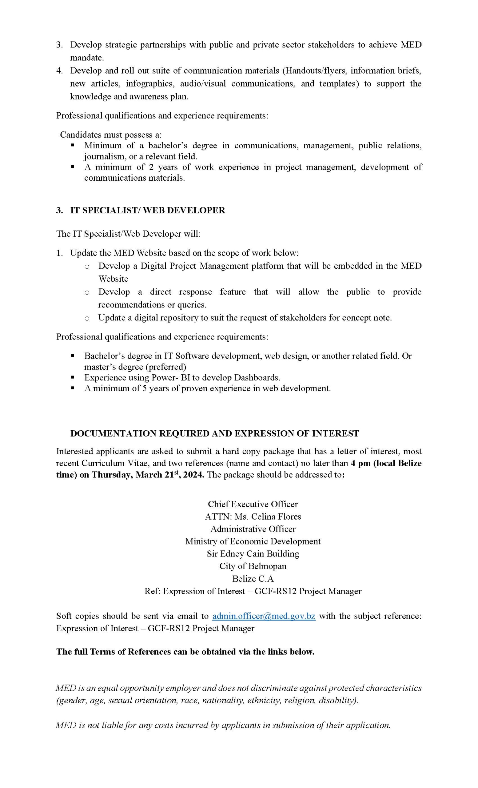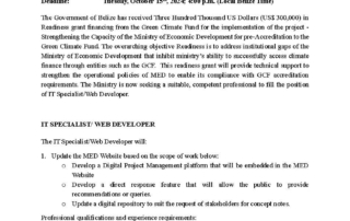 To download complete TOR, click the link below: https://met.dotdev.bz/wp/wp-content/uploads/2023/03/Call-for-EoI-Project-Development-Specialist.pdf