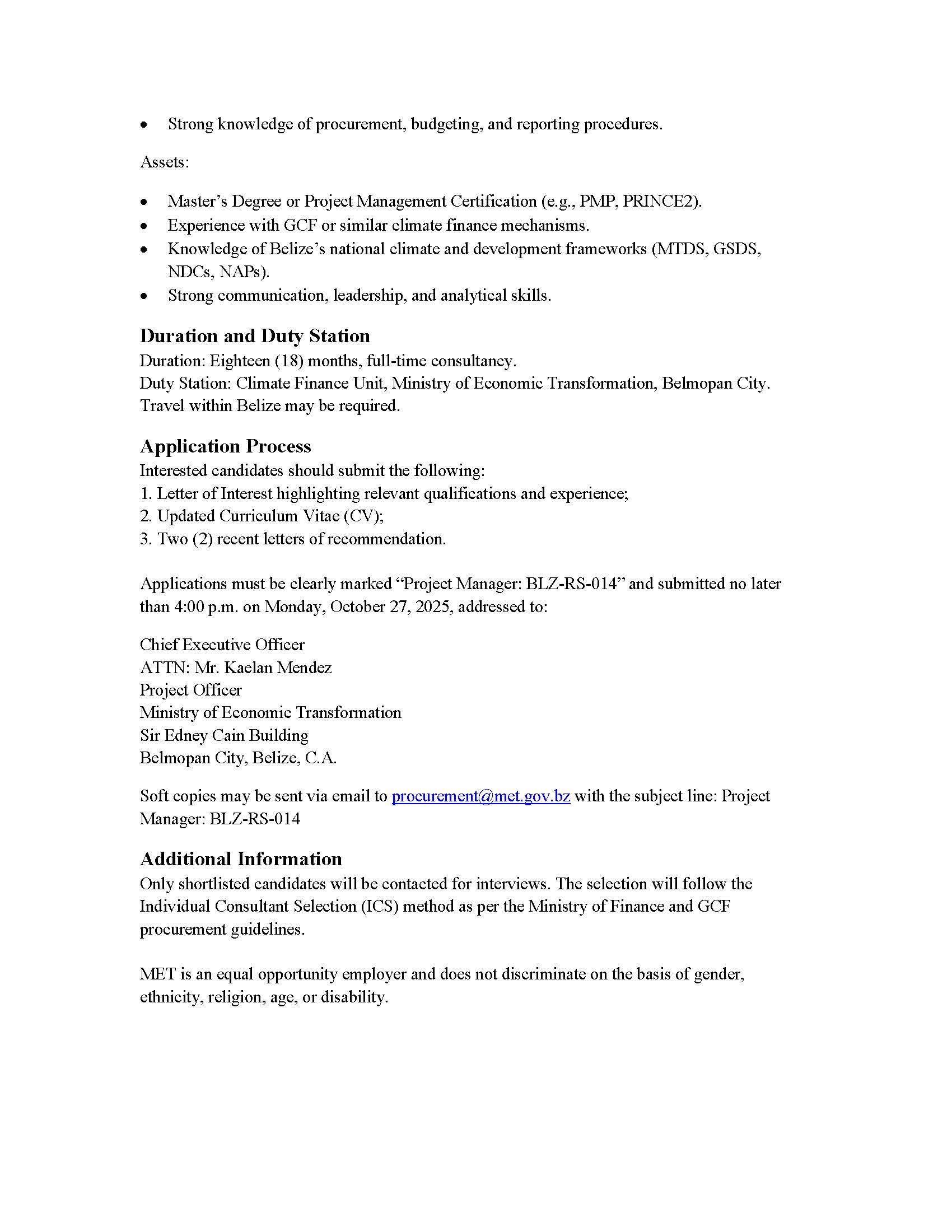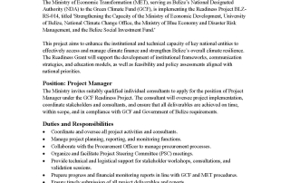 Project Manager Green Climate Fund (GCF) Readiness Project – BLZ-RS-014