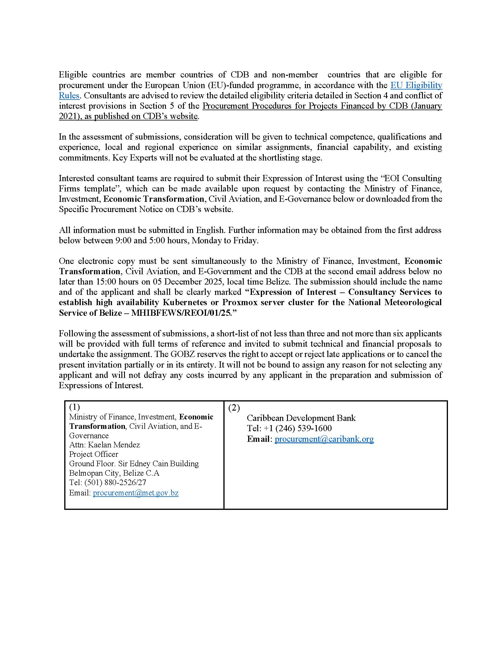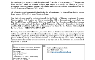 Request for Expression of Interest Consulting Firm Country: Belize Project: