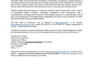 Monitoring and Evaluation (M&E) Officer Duty Station: Belmopan – Ministry