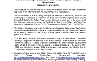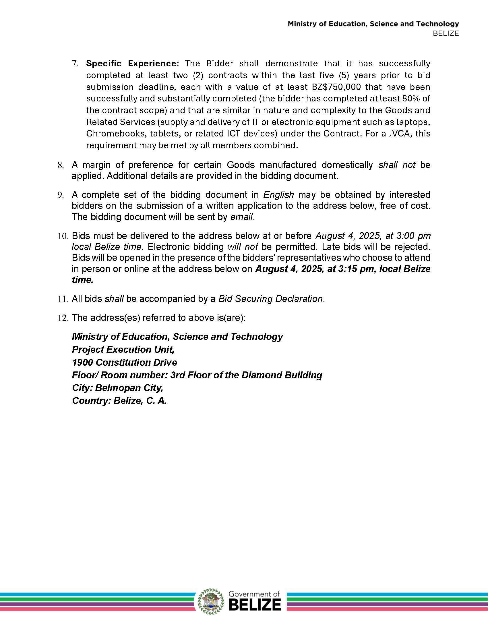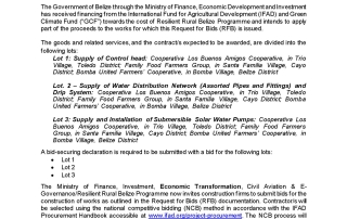 REQUEST FOR BIDS REQUEST FOR BIDS Joel Ical2025-07-01T13:50:38+00:00July 1st, 2025|Bid Opportunity, Goods & Services, Ministry of Economic Transformation, Resilient Rural Belize| Read More