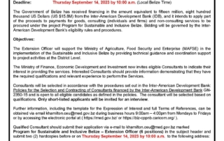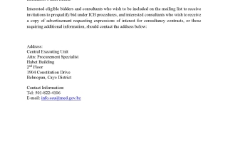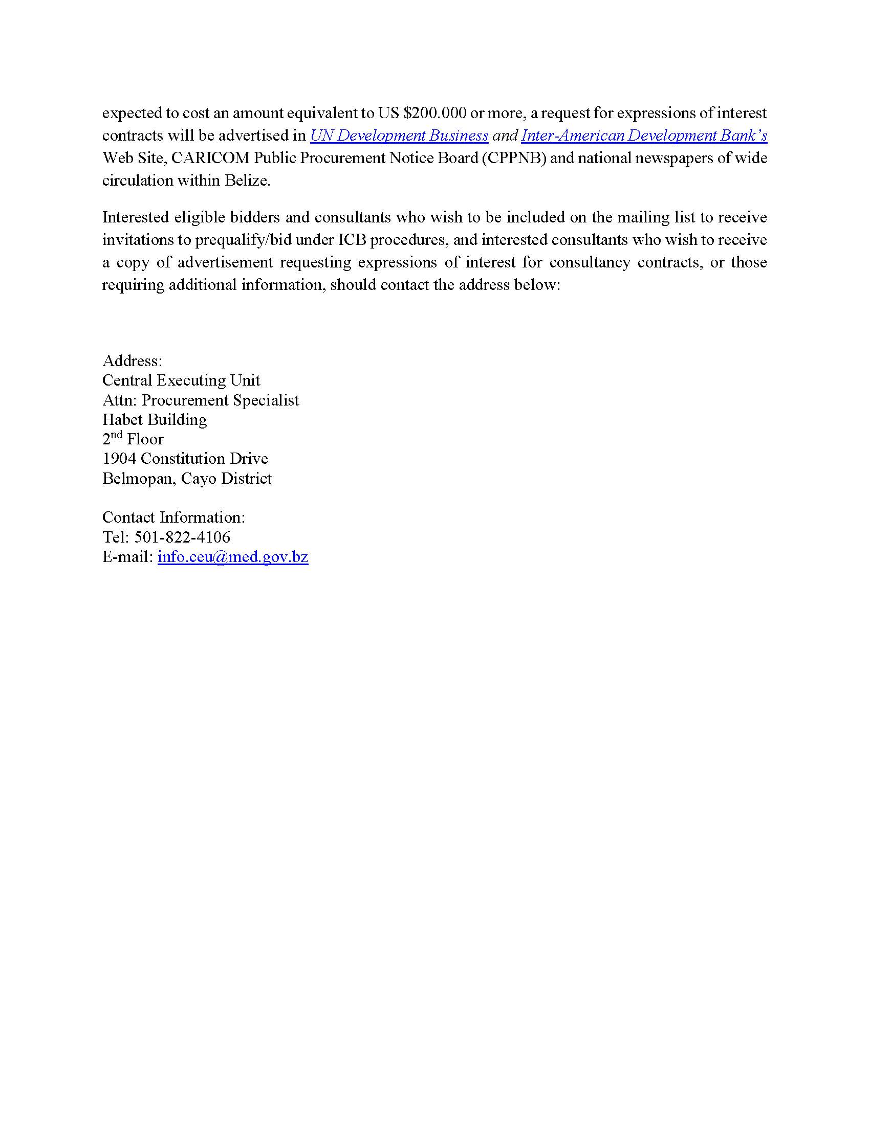 Government of: Belize Project/procuring entity: Resilient Rural Belize / Ministry