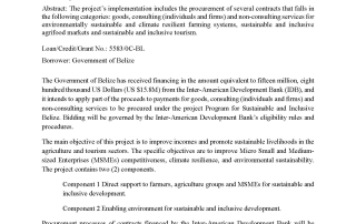 Institution: Inter-American Development Bank Country: Belize Project: Program for Sustainable