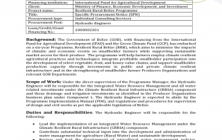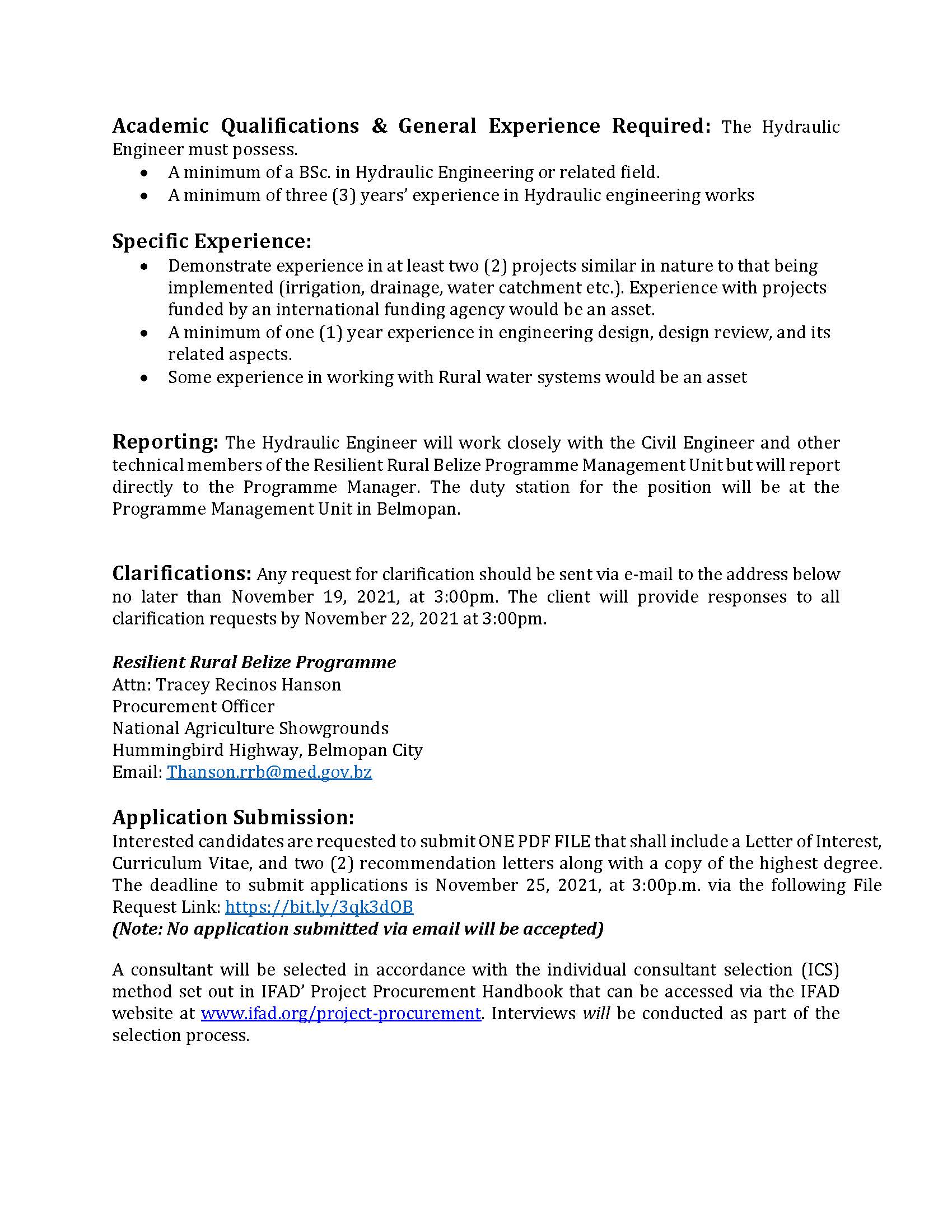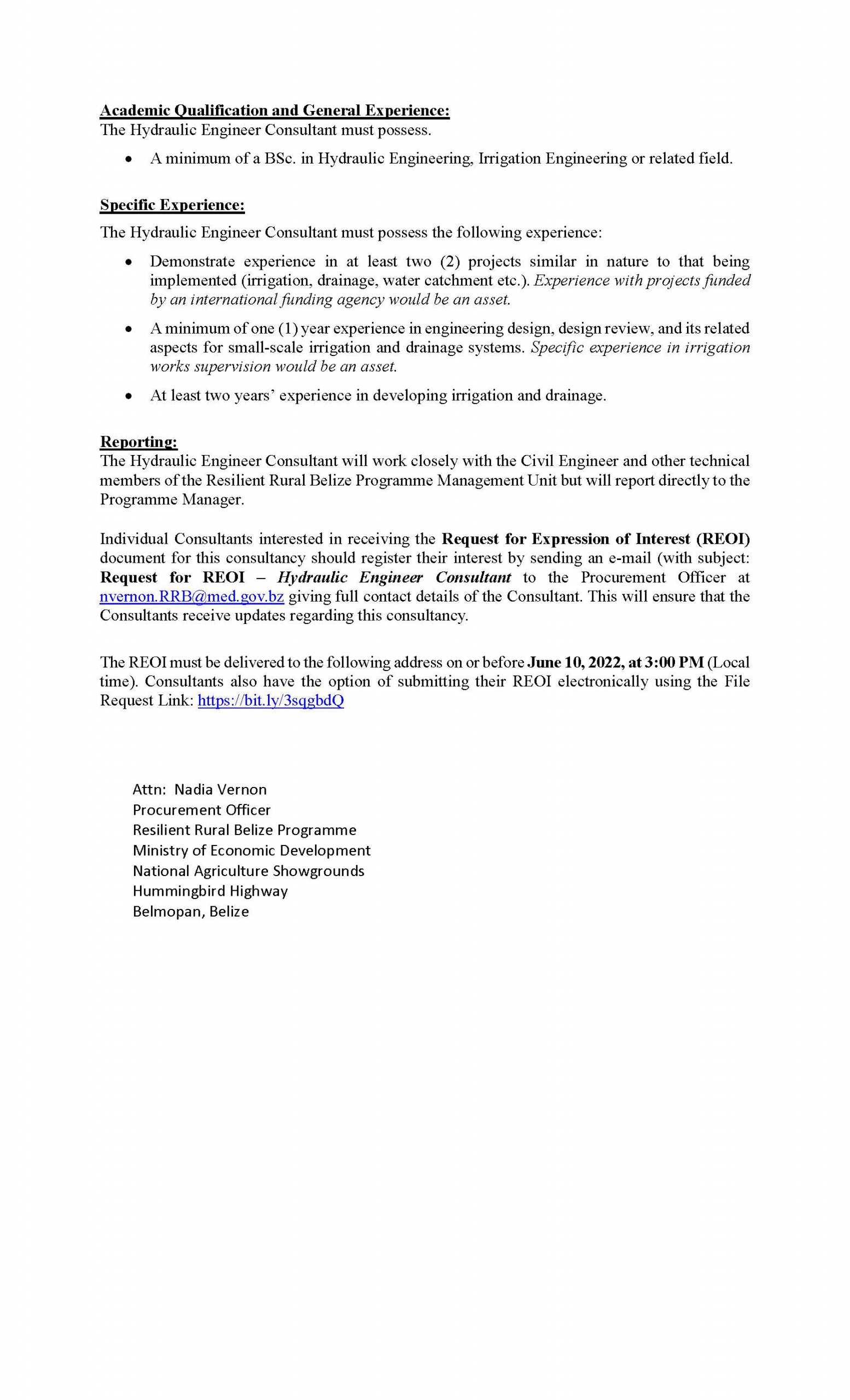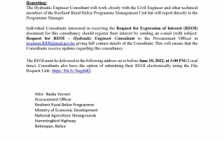 Request for Expression of Interest – HYDRAULIC ENGINEER CONSULTANT Request for Expression of Interest – HYDRAULIC ENGINEER CONSULTANT m3d@dmin2022-05-27T19:33:05+00:00May 27th, 2022|Resilient Rural Belize, Vacancies/Job Opportunities| Read More