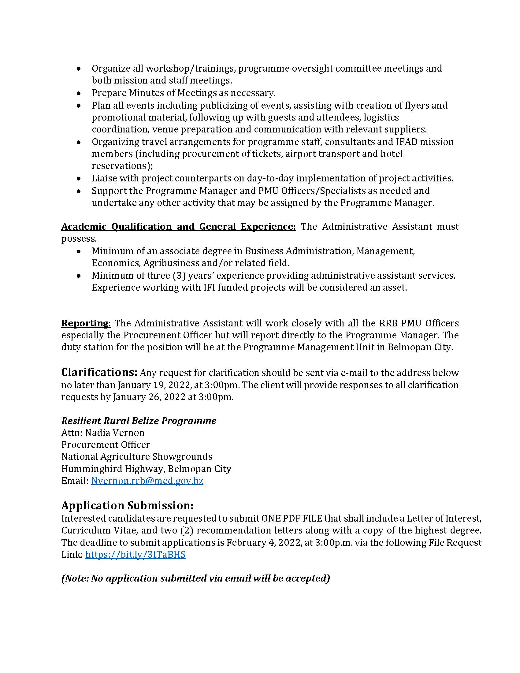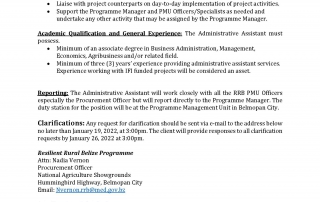 SPECIFIC PROCUREMENT NOTICE – ADMINISTRATIVE ASSISTANT SPECIFIC PROCUREMENT NOTICE – ADMINISTRATIVE ASSISTANT m3d@dmin2022-01-10T15:45:15+00:00January 10th, 2022|Economic Development, Resilient Rural Belize, Vacancies/Job Opportunities| Read More