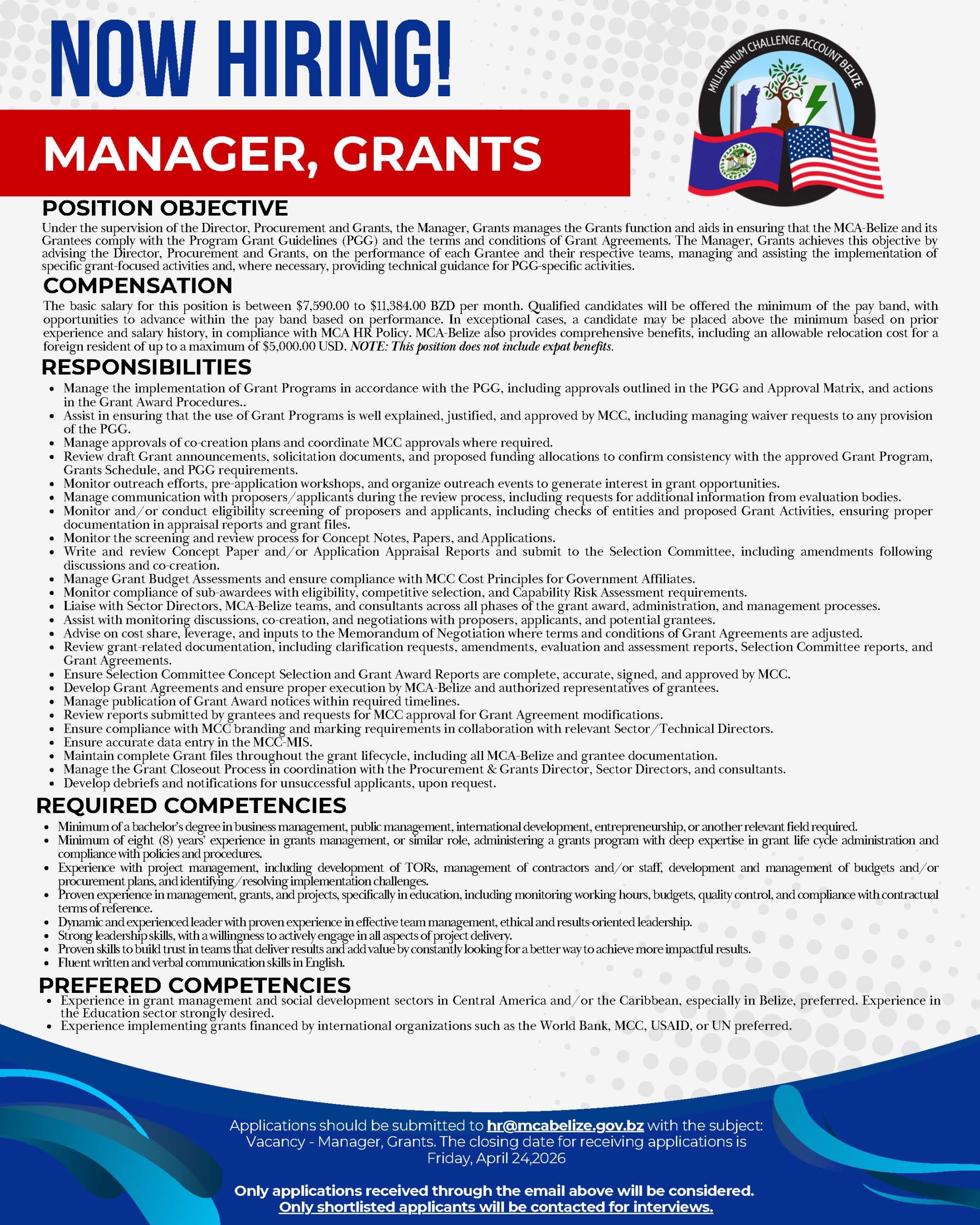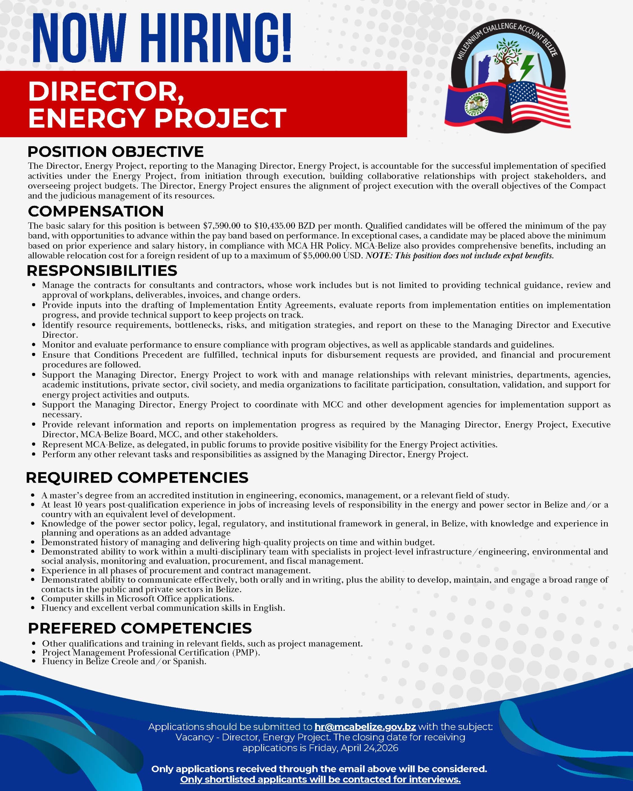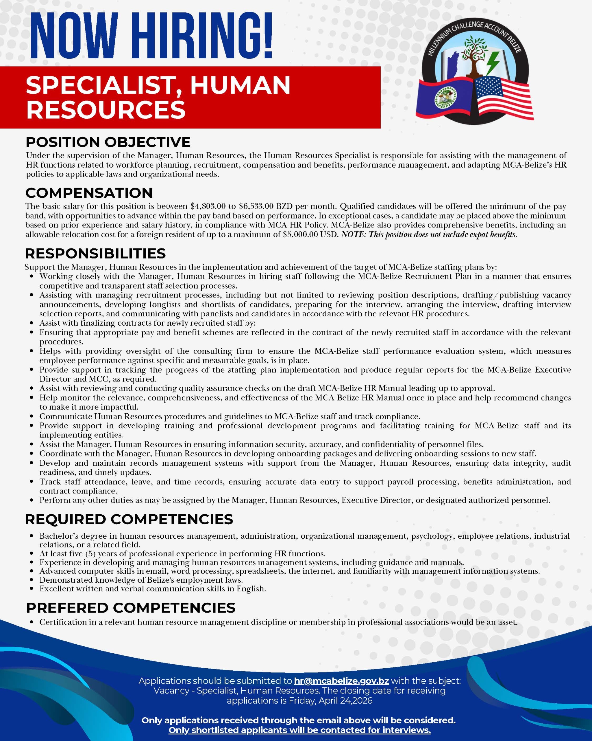 Millennium Challenge Account Belize Career Opportunity – Specialist, Human Resources