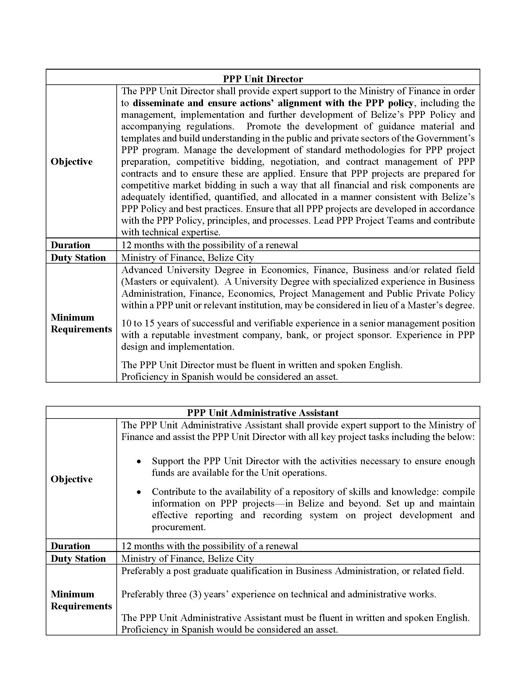 1. Public Private Partnership Unit (PPP Unit) Director 2. Public