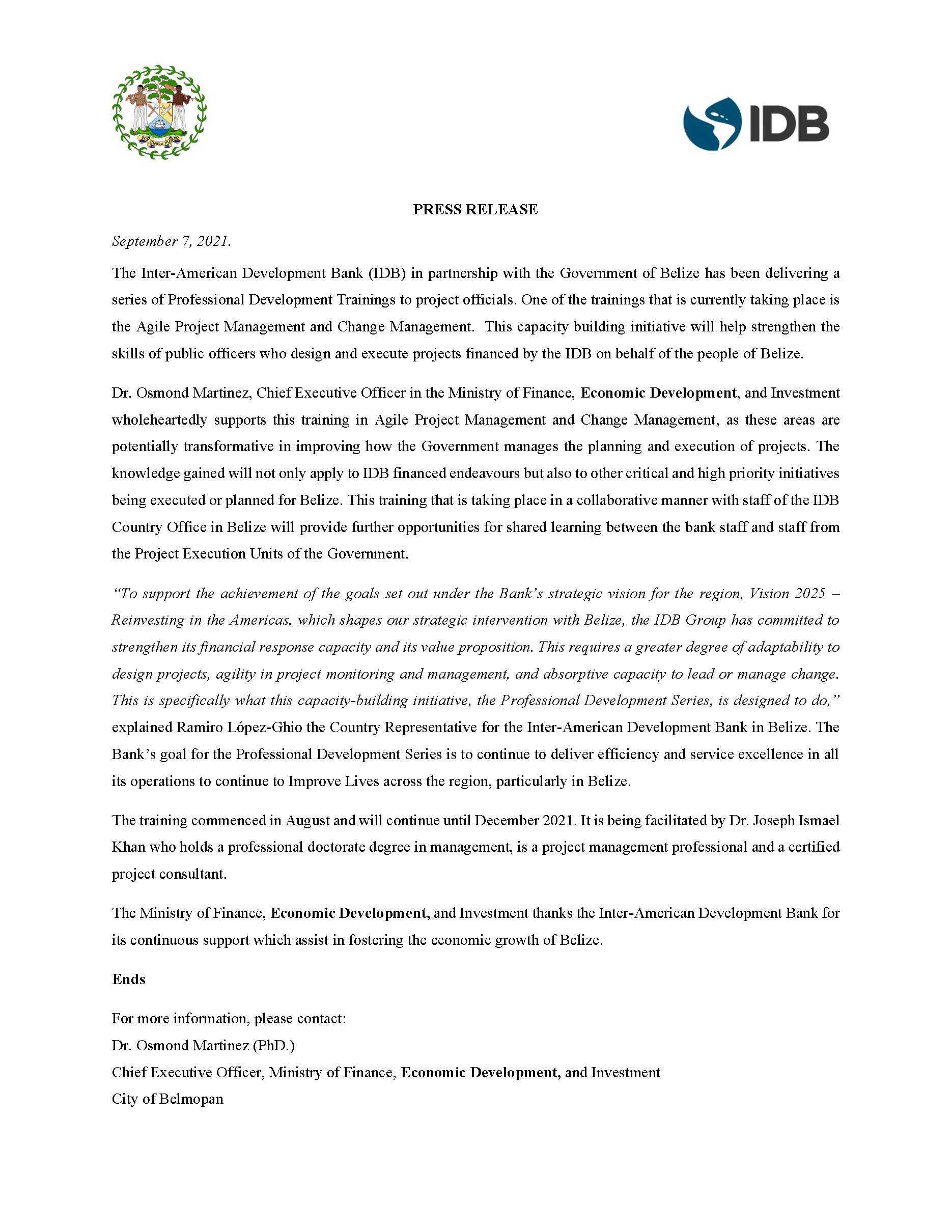 IDB Training – MFEDI Press Release