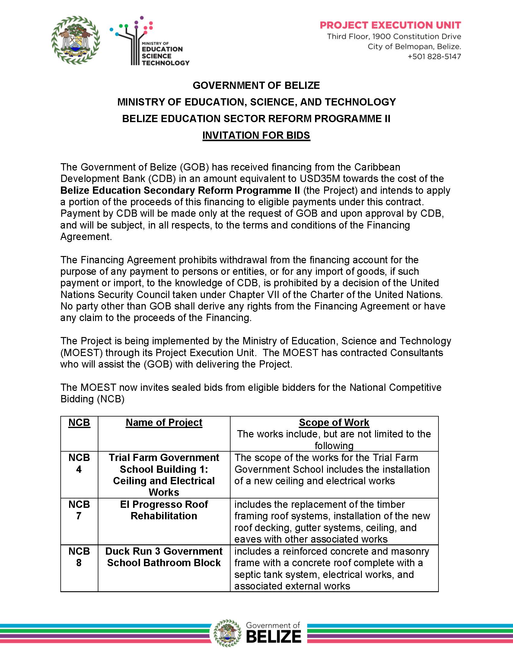 View Larger Image INVITATION FOR BIDS Joel Ical2025-10-23T14:00:55+00:00October 23rd, 2025|Bid Opportunity, CDB| Share This Notification FacebookTwitterLinkedInWhatsAppEmail Related Posts GENERAL PROCUREMENT NOTICE (GPN) February 6th, 2026 | 0 Comments SPECIFIC PROCUREMENT NOTICE (SPN) February 6th, 2026 | 0 Comments Request for Bids – Specific Procurement Notice (North CCC and BMHS)extended January 30th, 2026 | 0 Comments