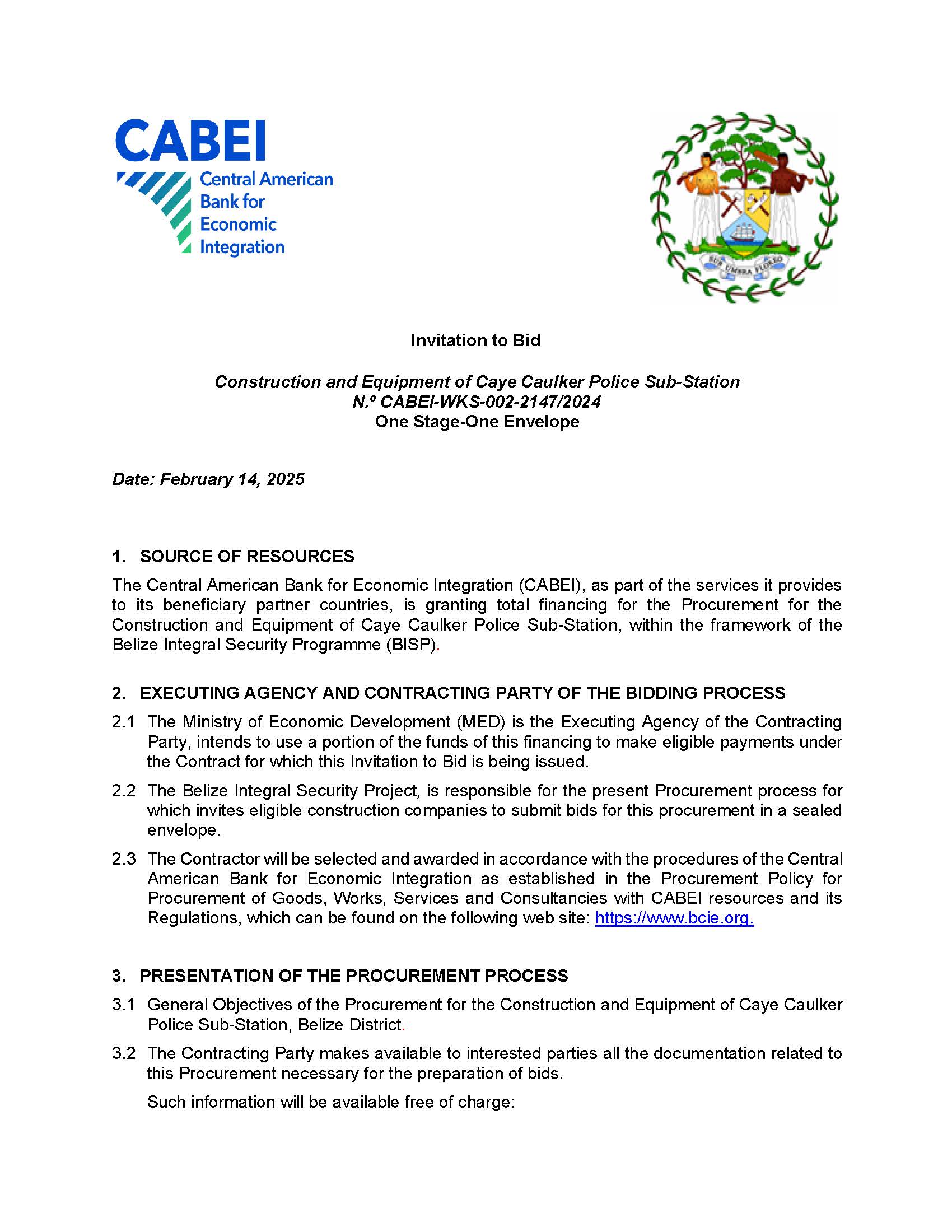 View Larger Image Invitation to Bid Click on the link to download the PDF. m3d@dmin2025-05-13T14:14:47+00:00February 24th, 2025|Bid Opportunity, CABEI, Consultancy Services, Economic Development, Ministry of Economic Development, Ministry of Finance, Vacancies/Job Opportunities| Share This Notification FacebookTwitterLinkedInWhatsAppEmail Related Posts Response to Request for Clarification No. 1(MHIBFEWS.REOI.01.26) February 10th, 2026 | 0 Comments GENERAL PROCUREMENT NOTICE (GPN) February 6th, 2026 | 0 Comments SPECIFIC PROCUREMENT NOTICE (SPN) February 6th, 2026 | 0 Comments