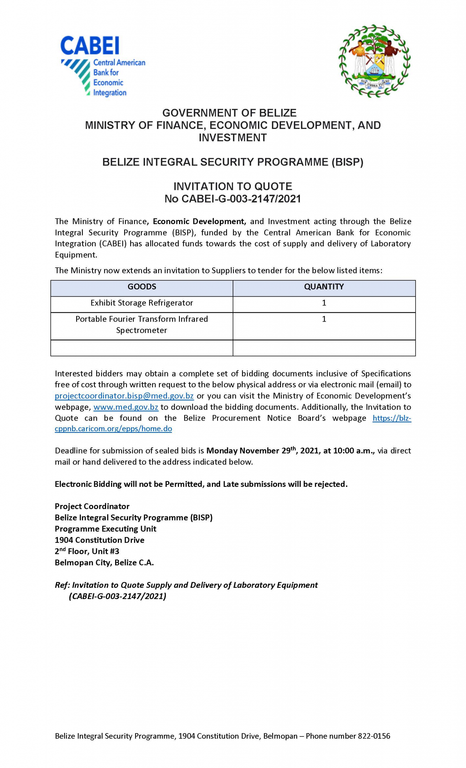 Click on the link to download Invitation to Quote (Laboratory Equipment) with Specificifications