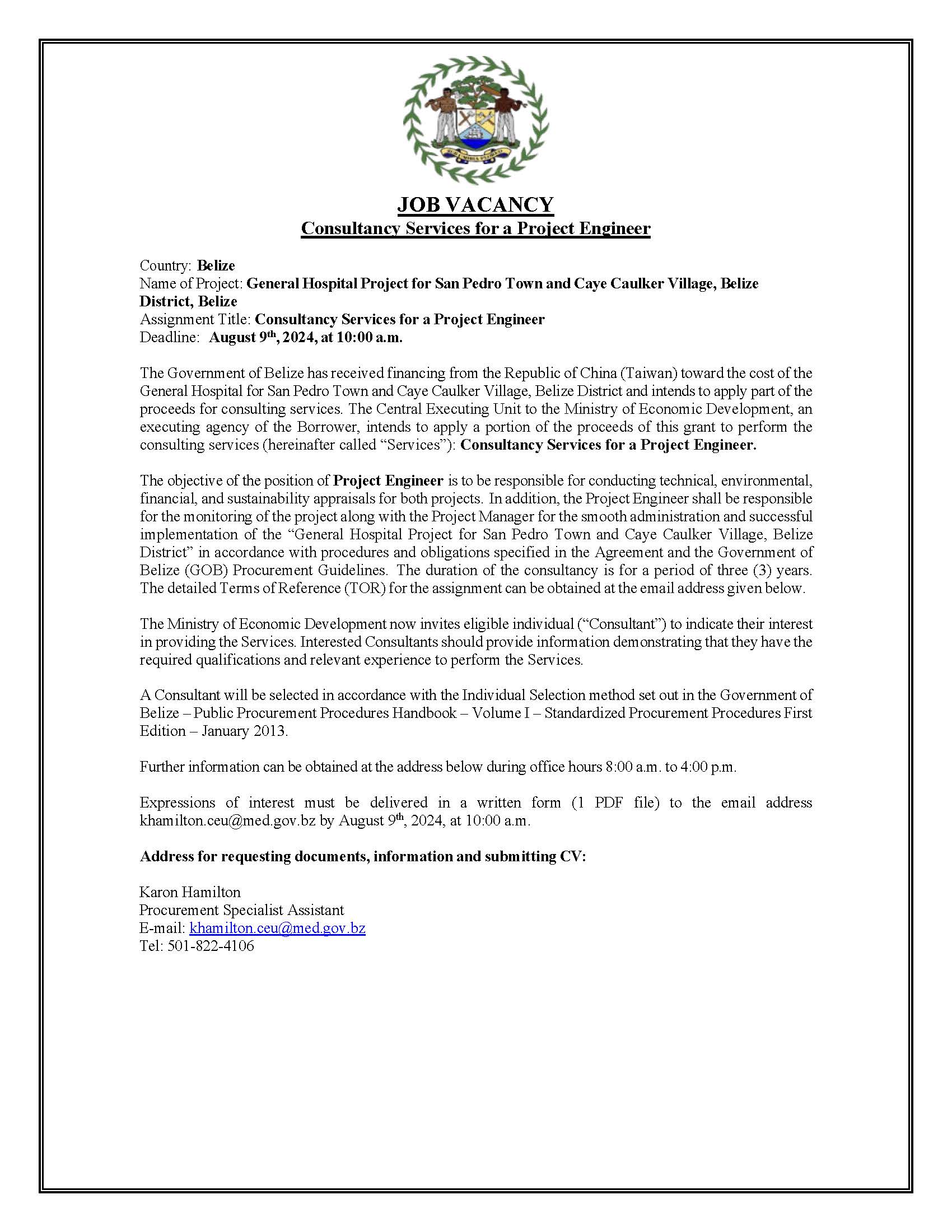 Name of Project: General Hospital Project for San Pedro Town and Caye Caulker Village, Belize District, Belize