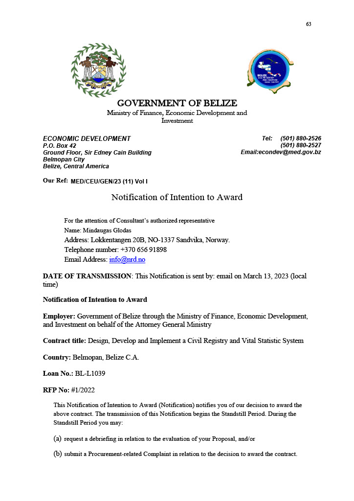Contract title: Design, Develop and Implement a Civil Registry and Vital Statistic System