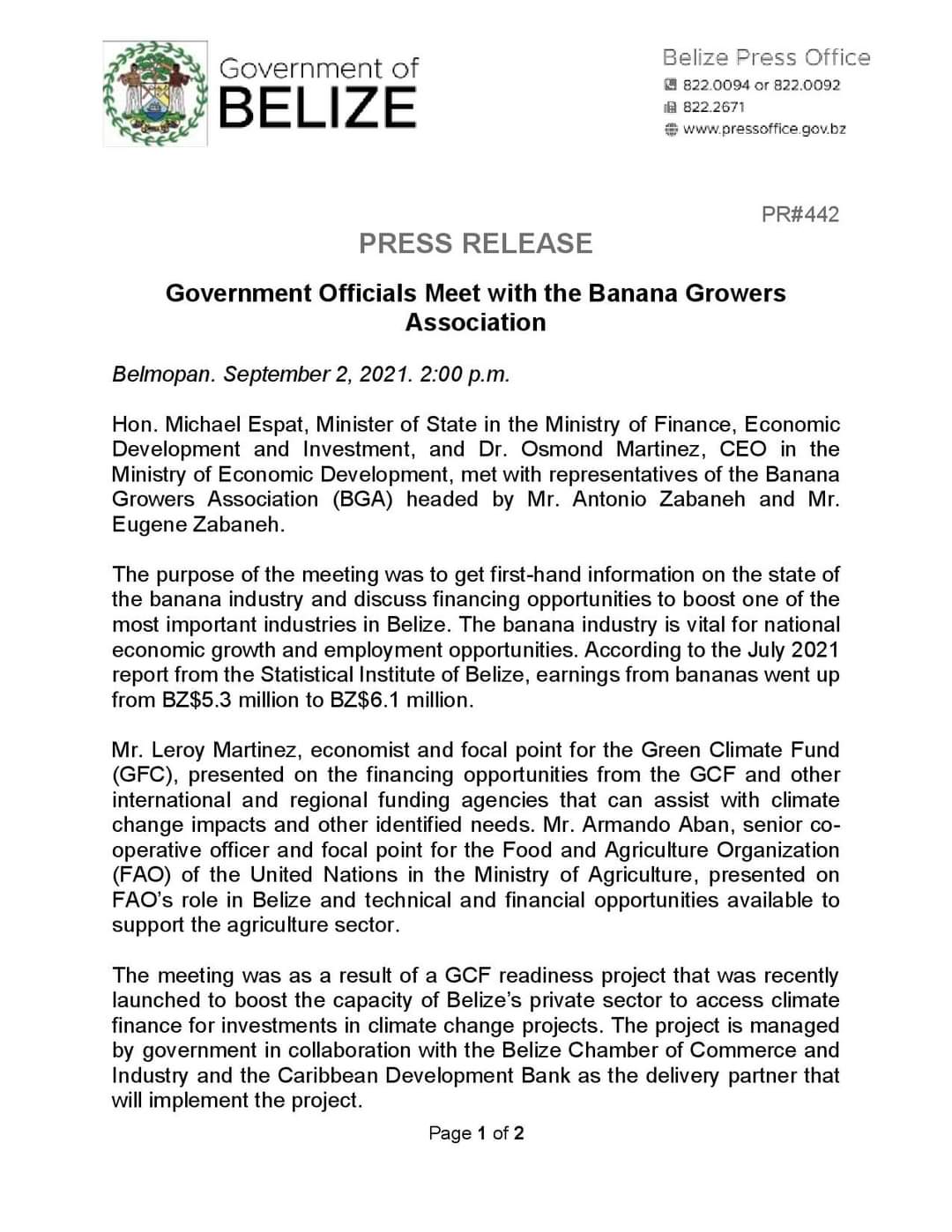 View Larger Image PRESS RELEASE: Government Officials Meet with the Banana Growers Association m3d@dmin2021-09-09T15:41:57+00:00September 2nd, 2021|Economic Development, Press Release| Share This Notification FacebookTwitterLinkedInWhatsAppEmail Related Posts CONSULTANCY FOR PROCUREMENT OFFICER FOR THE BELIZE INTEGRAL SECURITY PROGRAMME (BISP) January 25th, 2026 | 0 Comments REQUEST FOR EXPRESSIONS OF INTEREST – Consulting Firm December 29th, 2025 | 0 Comments REQUEST FOR EXPRESSIONS OF INTEREST – FIRMS November 17th, 2025 | 0 Comments