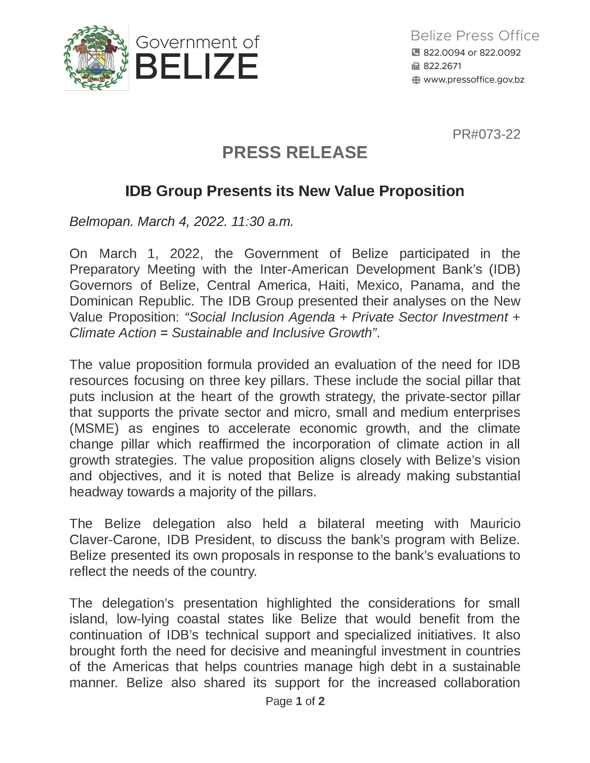 View Larger Image PRESS RELEASE – IDB Group Presents its New Value Proposition m3d@dmin2022-03-04T20:05:56+00:00March 4th, 2022|Economic Development, Press Release| Share This Notification FacebookTwitterLinkedInWhatsAppEmail Related Posts CONSULTANCY FOR PROCUREMENT OFFICER FOR THE BELIZE INTEGRAL SECURITY PROGRAMME (BISP) January 25th, 2026 | 0 Comments REQUEST FOR EXPRESSIONS OF INTEREST – Consulting Firm December 29th, 2025 | 0 Comments REQUEST FOR EXPRESSIONS OF INTEREST – FIRMS November 17th, 2025 | 0 Comments