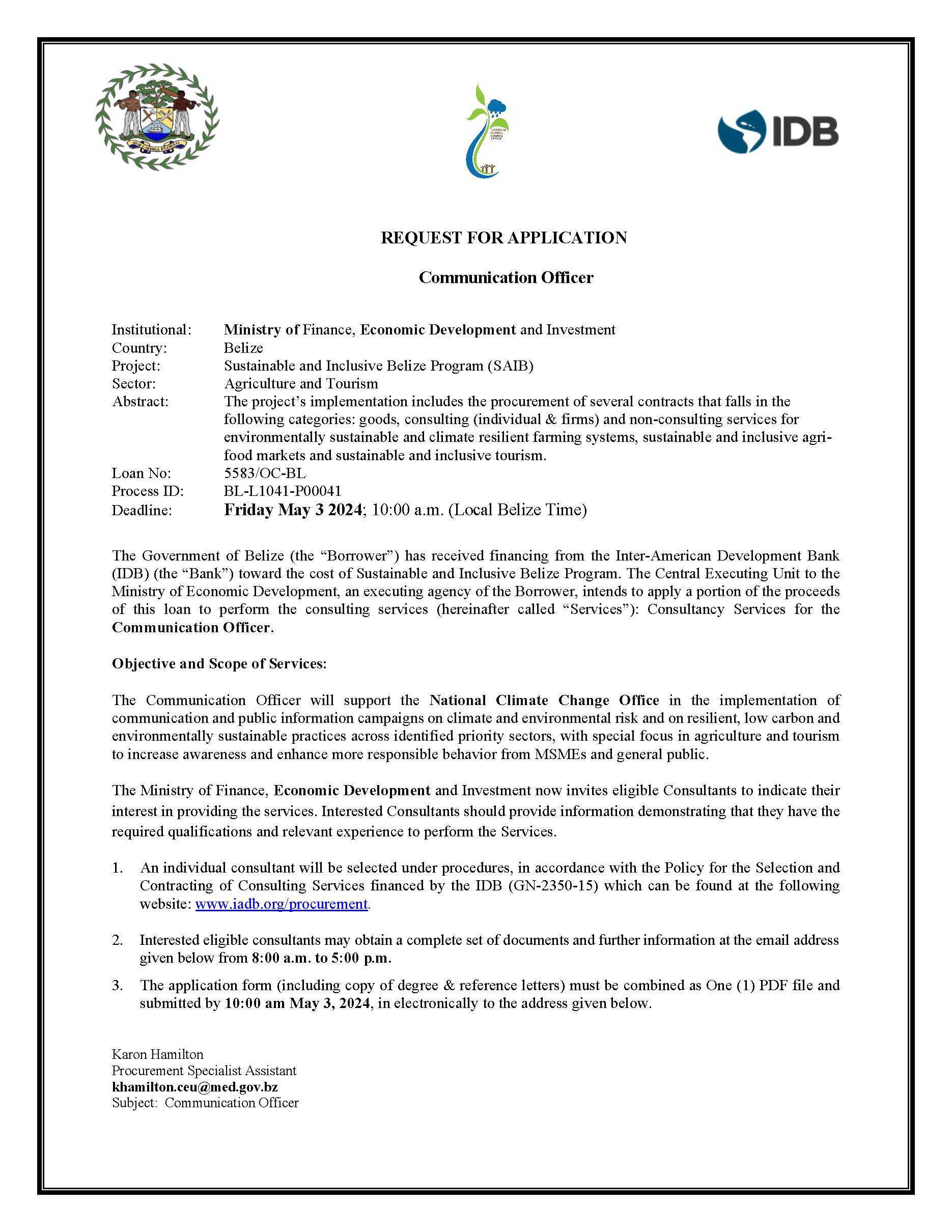 Deadline: Friday May 3 2024; 10:00 a.m. (Local Belize Time