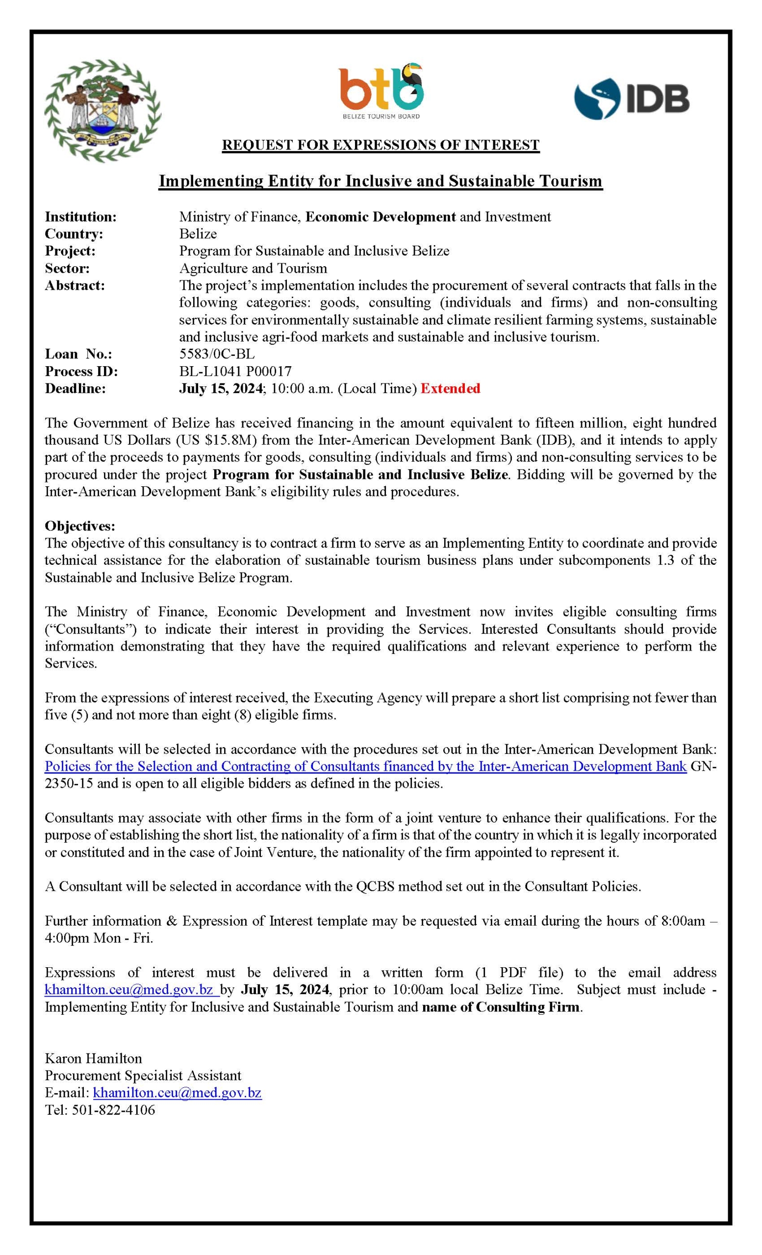 Deadline: July 15, 2024; 10:00 a.m. (Local Time) Extended