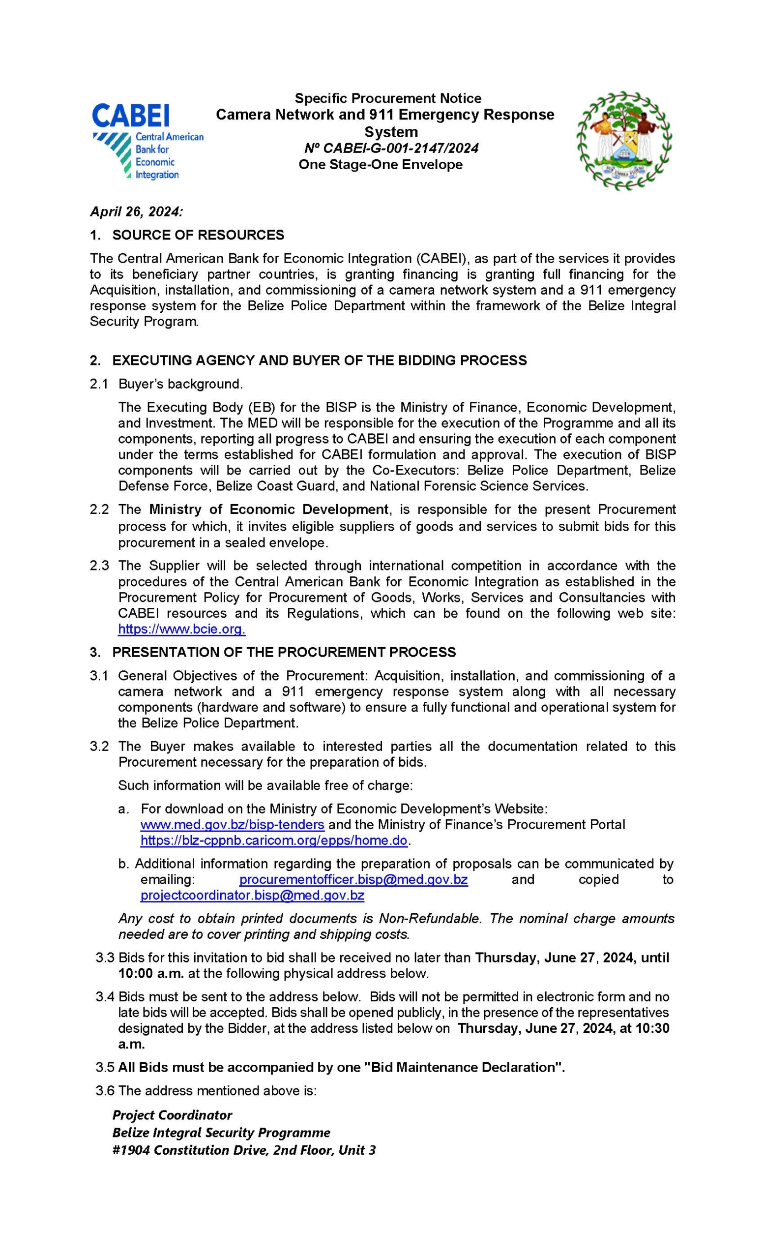Ref: Belize Integral Security Programme (Nº CABEI-G-001-2147/2024)