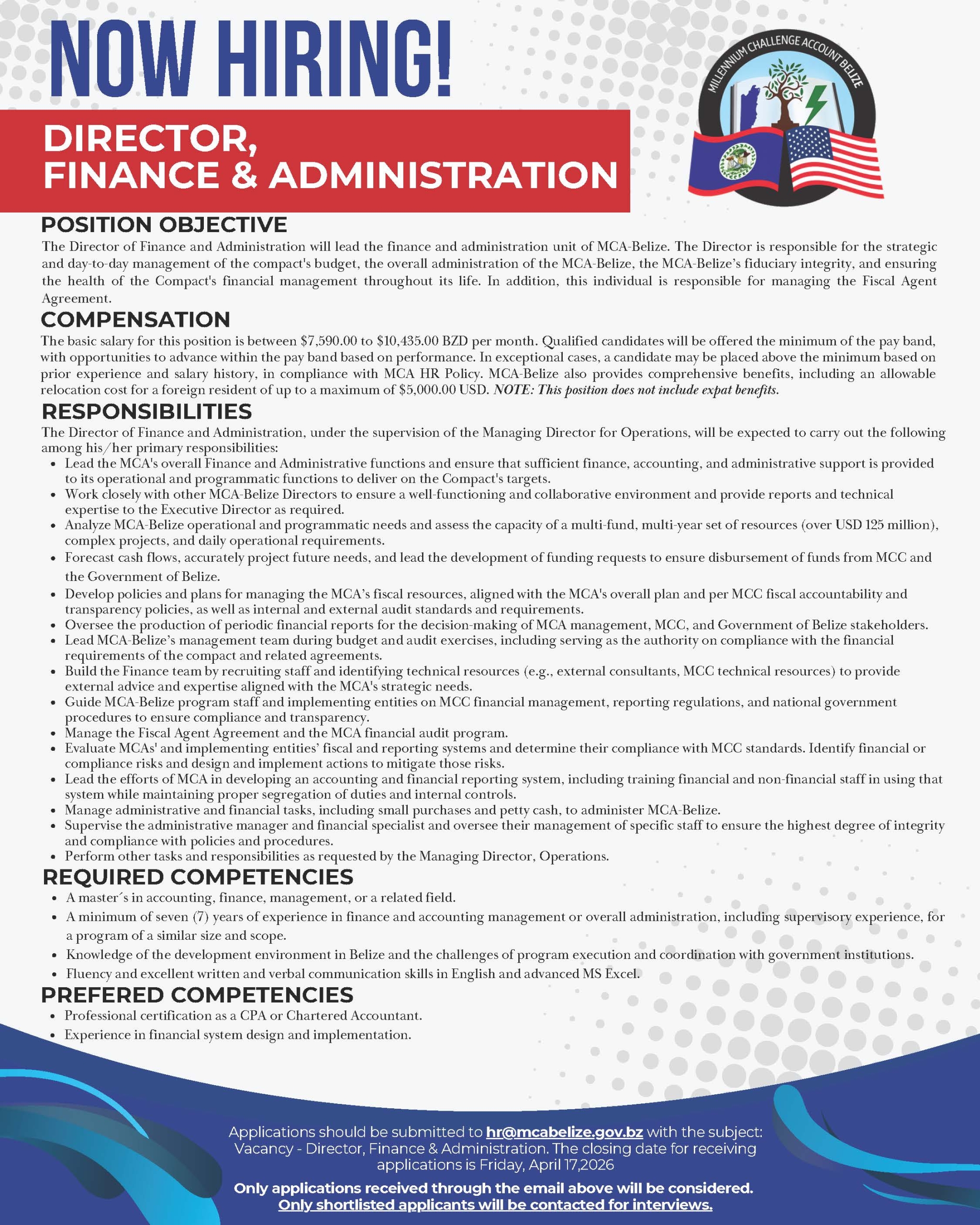 Joel Ical2026-04-02T15:26:42+00:00April 2nd, 2026|Belize Compact Development Program, MCA-Belize, Vacancies/Job Opportunities|